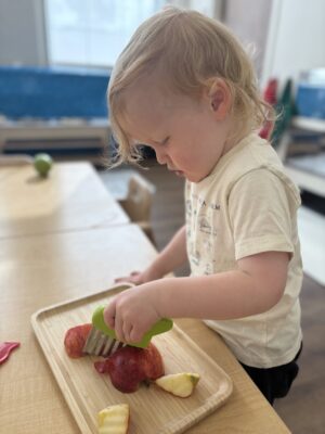 Fostering Independence and Community: Independence is central to our philosophy. Toddlers experience “I can do it myself” moments through activities like dressing and simple food prep, balanced with lessons in grace and courtesy to build a caring classroom community.